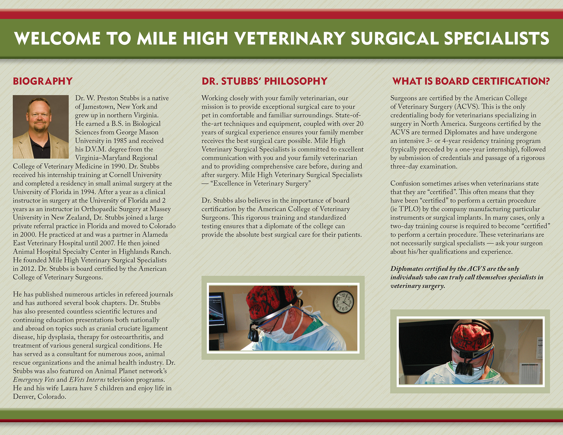This traveling veterinary orthopedic specialist wanted a brochure that he could give to potential clients to explain his qualifications.